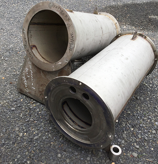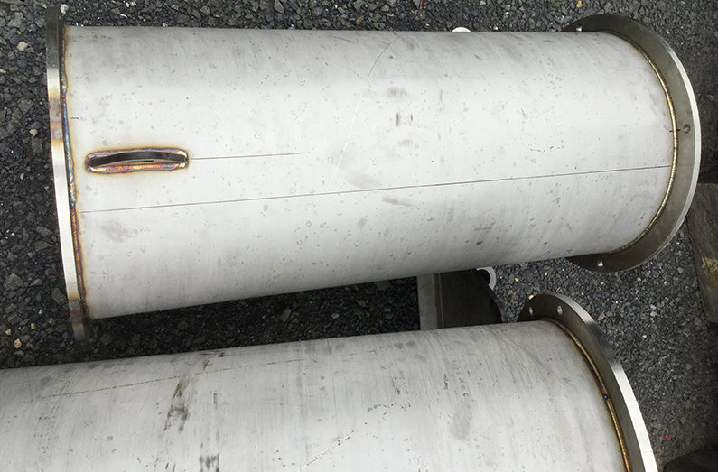 Each stainless steel pipe is 17" in diameter with flanges and mounts.